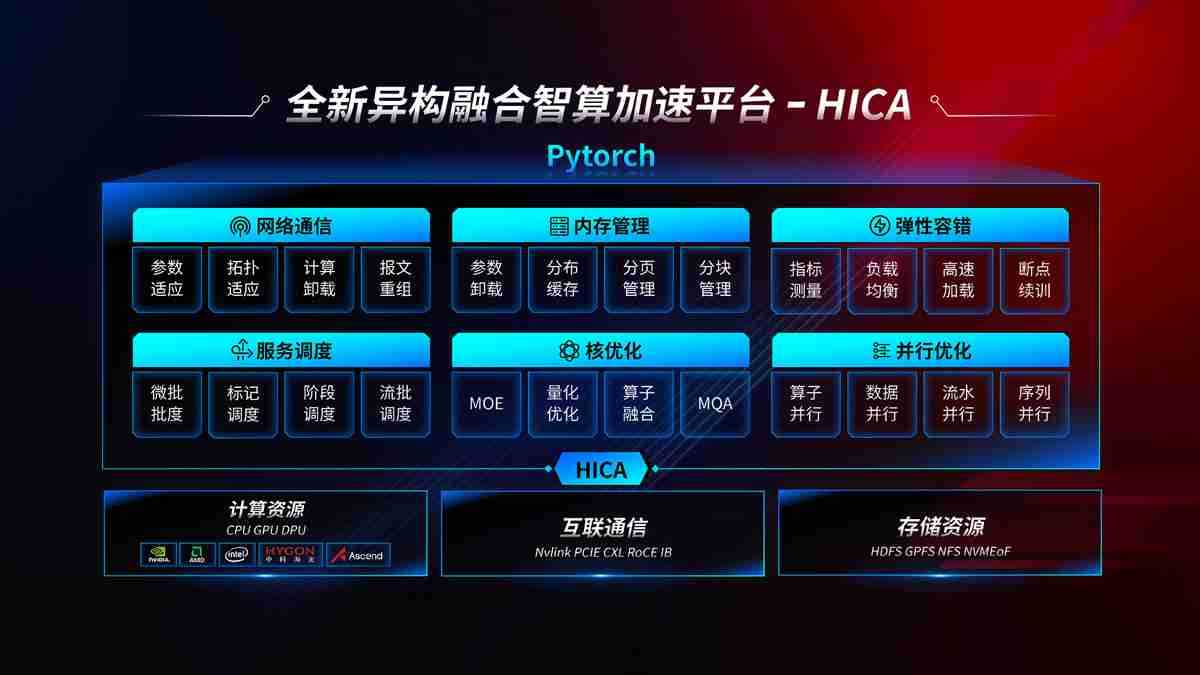 通过自研的服务层、、、、中间适配层、、、、以及调度编排算法,,,采用数据并行、、模型并行等多种并行方式,,,把并行计算任务进行有效的分解,,,使其分别由相应的软件栈和算力资源来承接。。。。当GPU资源变化,,,,HICA可以实时动态调度计算子任务并调整模型拓扑和架构,,,以充分聚合各种算力资源。。。。